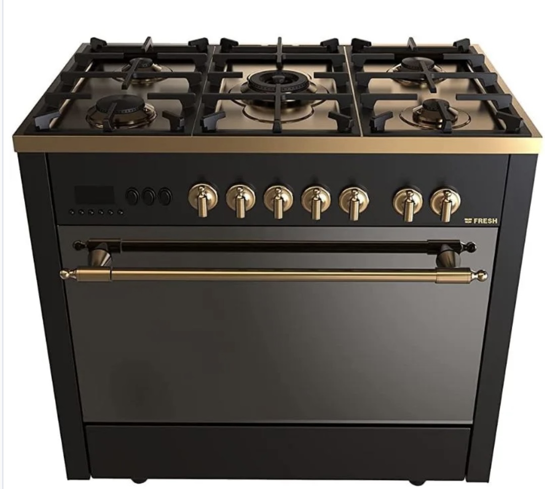 Cook in luxury with the Fresh Professional Gold Gas Cooker (Model: 10094)—a perfect combination of power, style, and durability. Designed for modern kitchens, it delivers professional-level performance with a sleek black & gold finish that adds a premium touch to any space.
