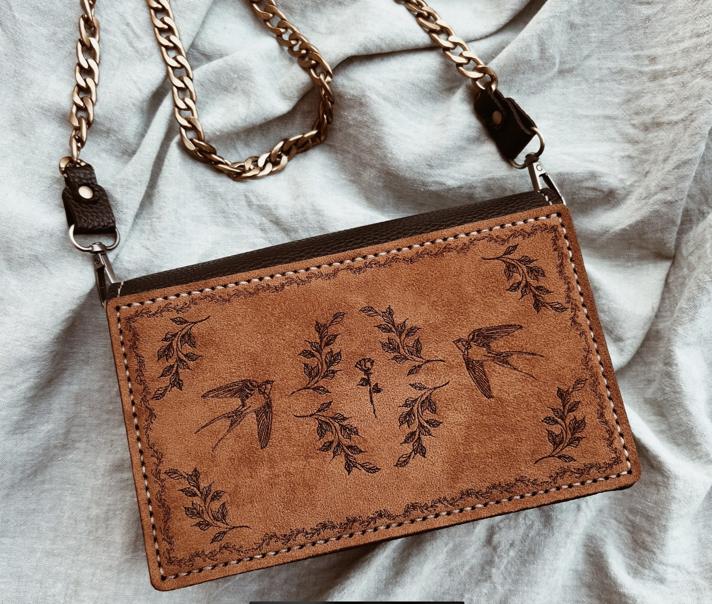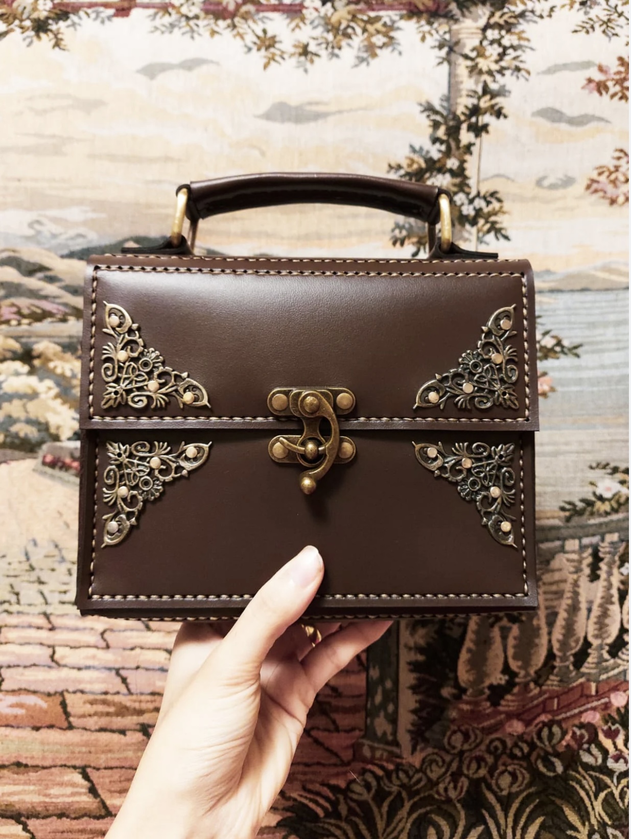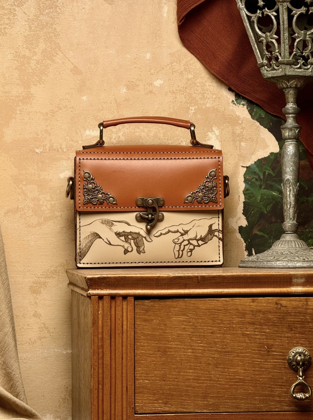 • Limited-edition embossed leather designs with vintage-style brass latches.