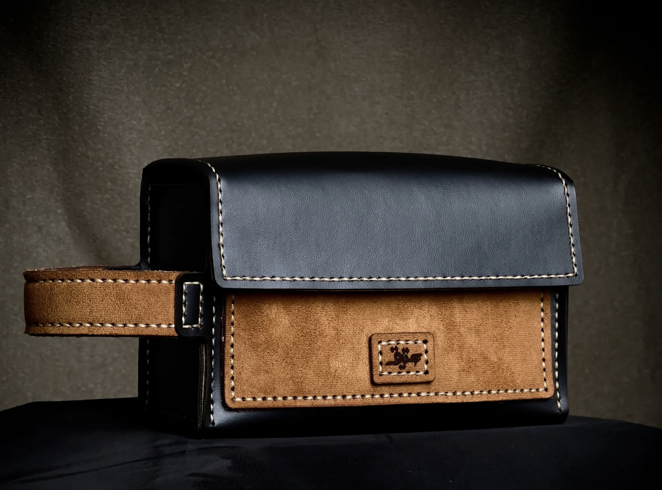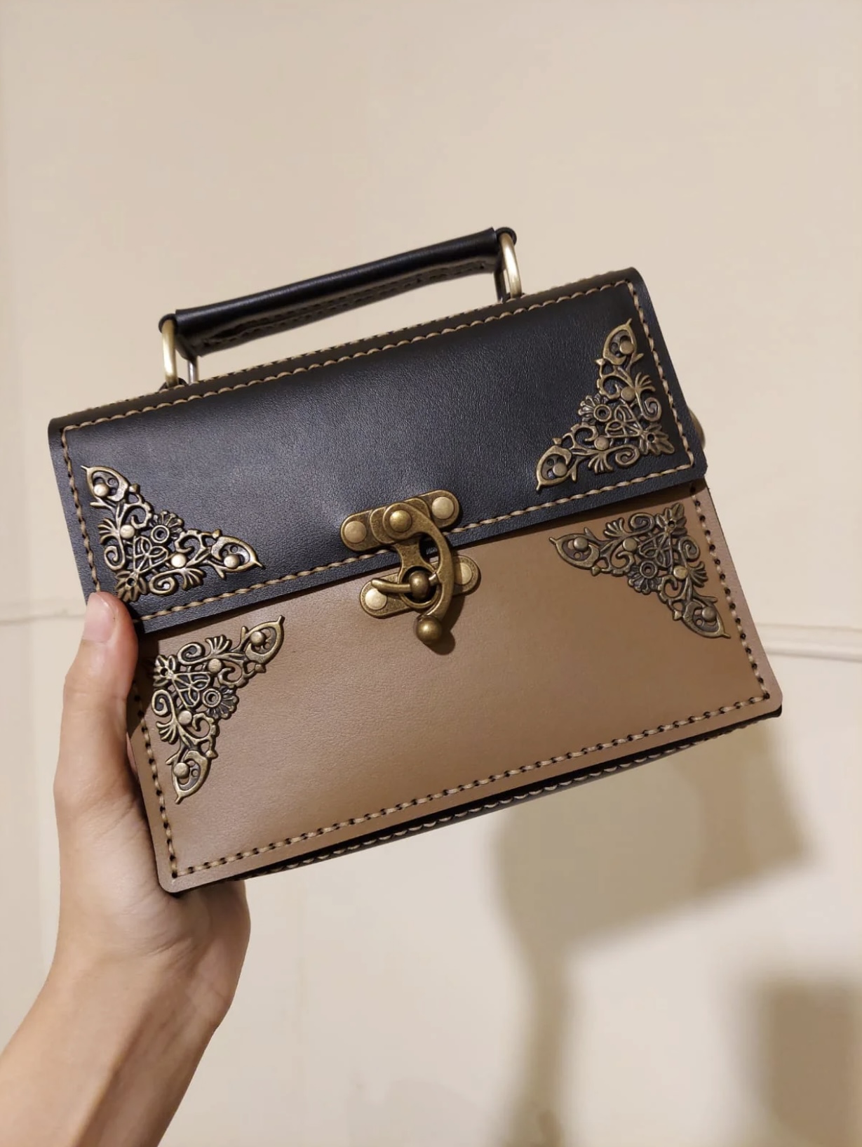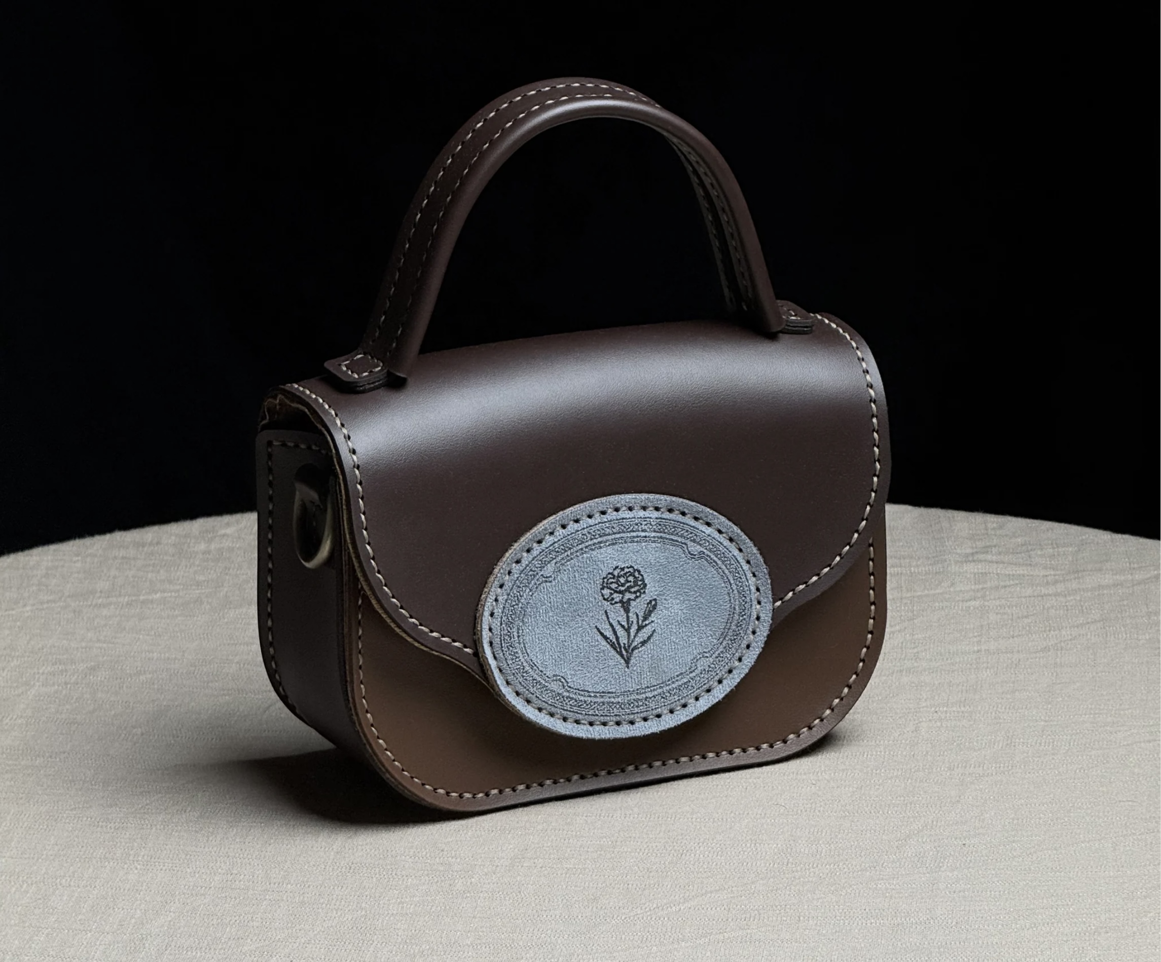 HandleRigid leather handle — hand-stitched