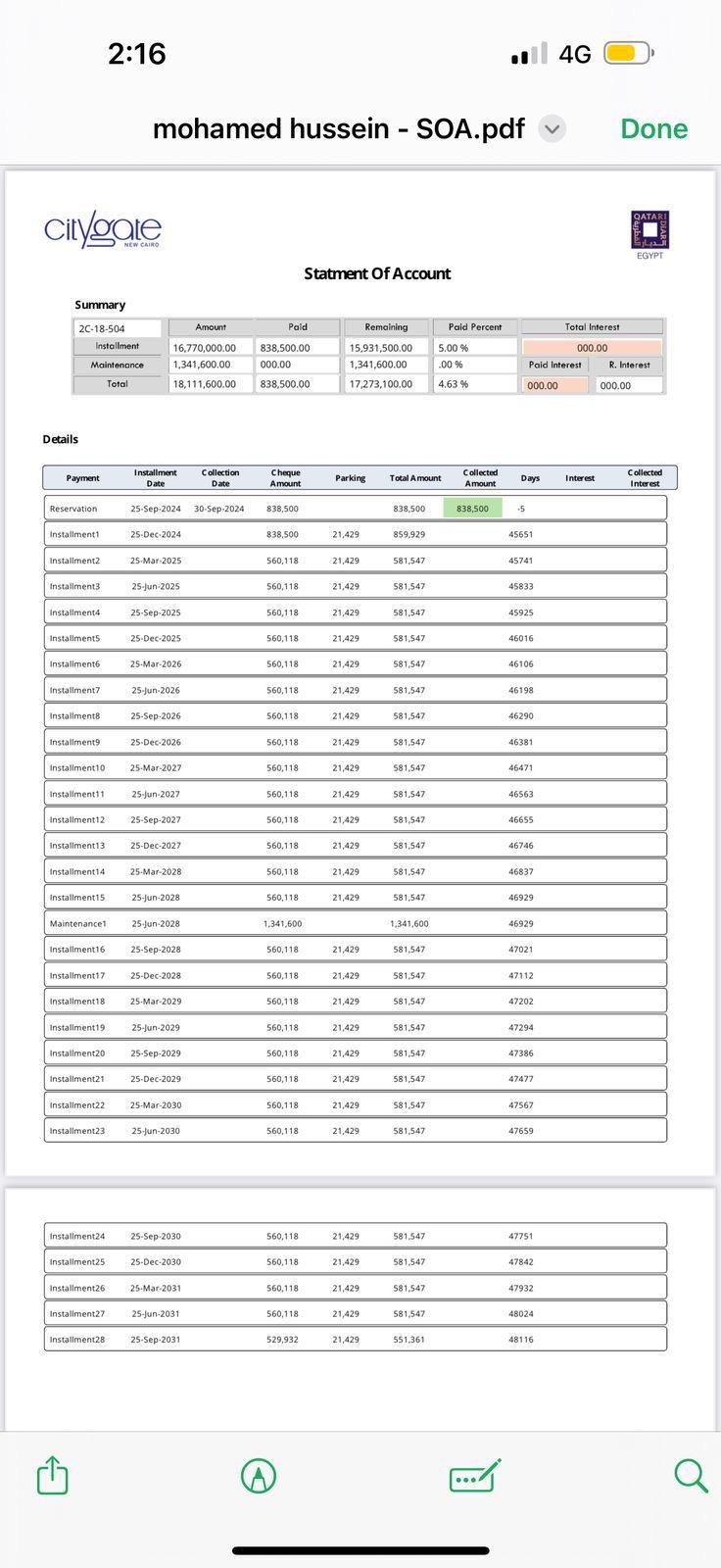• Down Payment: 4,424,617 EGP