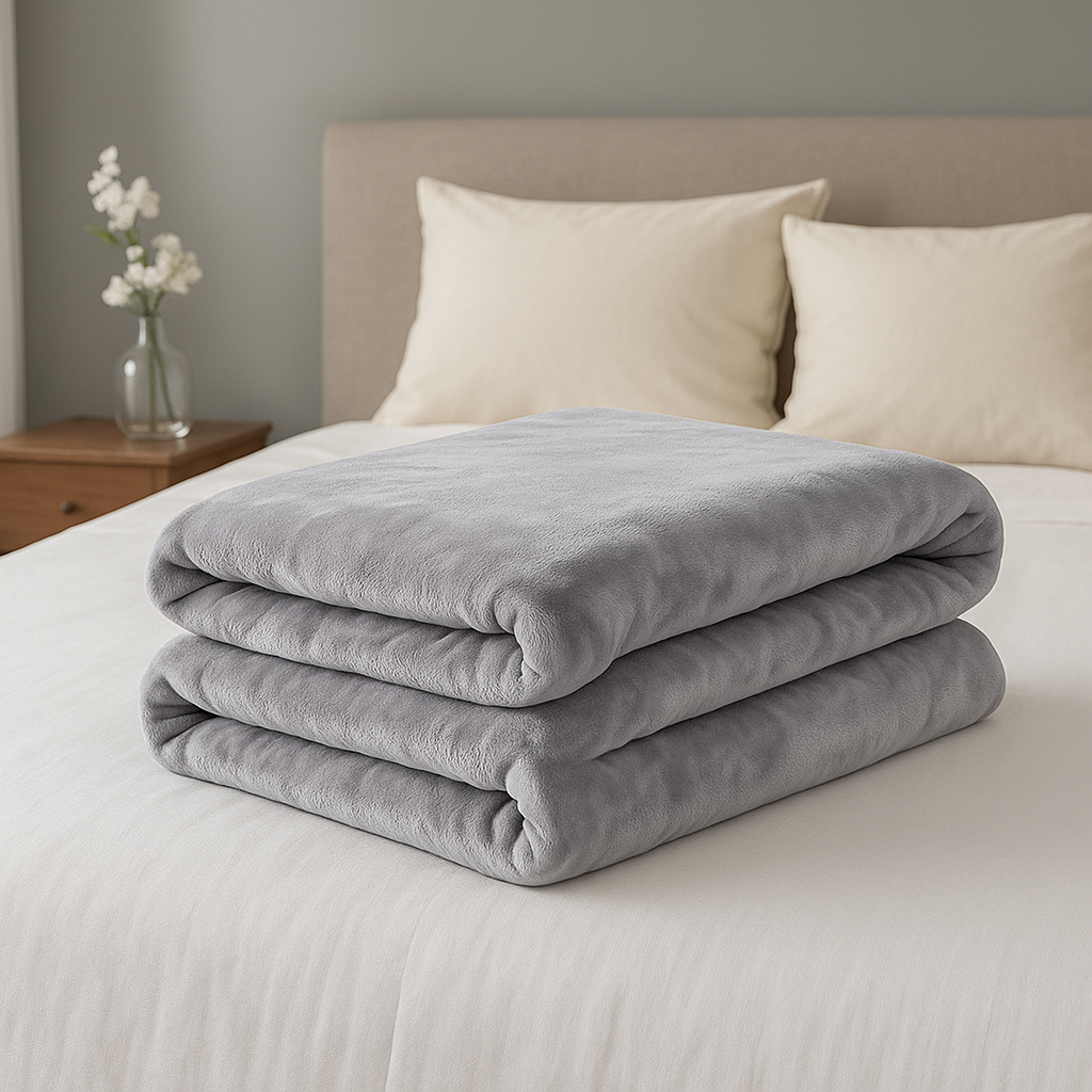 The Santamora Blanket – 4kg – Laser Cut Design in elegant gray adds a touch of luxury and comfort to any bedroom. Crafted from 100% premium polyester, this heavy-weight blanket (4 kg) delivers exceptional warmth during winter while maintaining a soft, cozy texture that is gentle on the skin. Its modern laser-cut pattern enhances the aesthetic appeal, making it both a practical and stylish addition to your home.