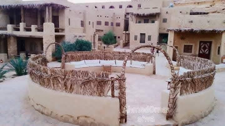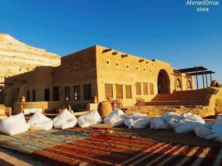 One of the most unique eco-hotels in Egypt, located in Siwa Oasis. Built with traditional Siwan materials, without electricity, AC, or fans. Solar energy is used only for mobile charging. Owned by a Moroccan entrepreneur, serving authentic Moroccan cuisine.