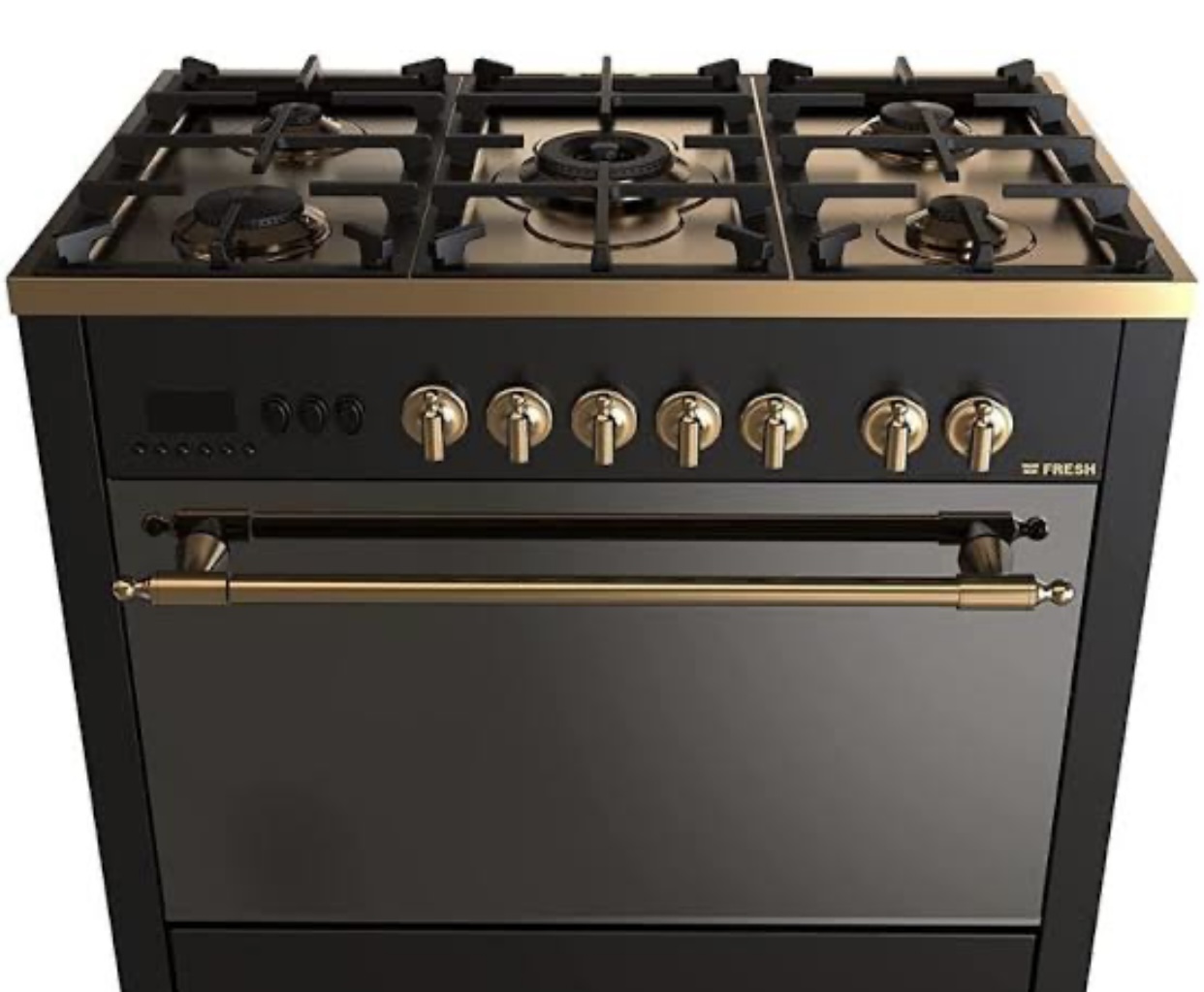 Cook in luxury with the Fresh Professional Gold Gas Cooker (Model: 10094)—a perfect combination of power, style, and durability. Designed for modern kitchens, it delivers professional-level performance with a sleek black & gold finish that adds a premium touch to any space.